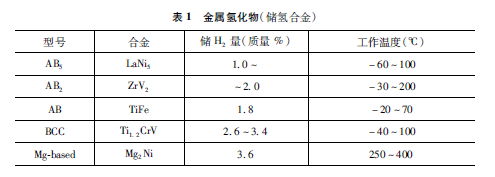 鎳氫電池的負(fù)極材料主要是一個跟氫結(jié)合很強(qiáng)的元素與跟氫結(jié)合不強(qiáng)的元素,通過適當(dāng)?shù)某煞峙浜?,組成化合物,這樣又能夠吸收氫氣,同時也能夠放出氫氣的化合物(表1)。一方面可以作為氫氣儲存使用,同時也可以作為鎳氫電池負(fù)極材料使用,這也是目前最大應(yīng)用領(lǐng)域。