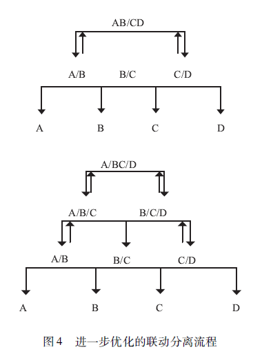 通過工藝匹配,可實(shí)現(xiàn)多組分分離過程中眾多分離單元只進(jìn)行一次堿皂化和一次酸反萃取。其工藝流程如圖4所示。